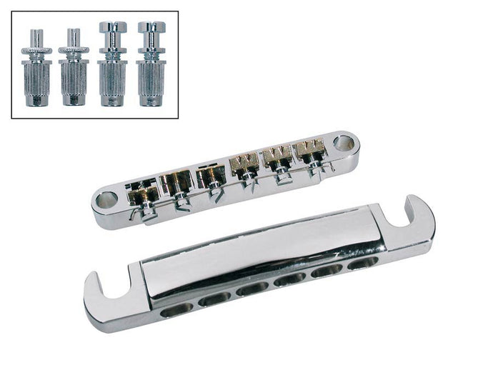 Bridge and tailpiece set, 12-string, with studs, chrome