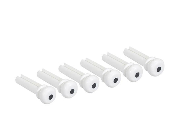 Bass bridge pins, plastic, 6-pack, white with pearloid dot