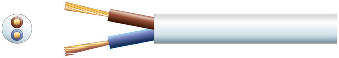 Mercury 2 core oval mains PVC, 2 x 24/0.2mm, 6A, White, 100m