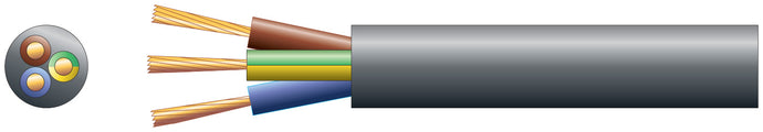 Mercury 3 core round mains PVC, 3 x 24/0.2mm, 6A, 6.1mm, Black, 100m