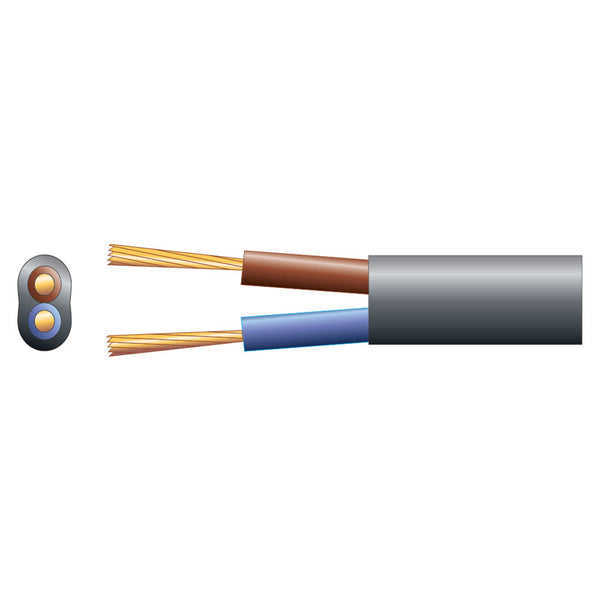 Mercury 2 core oval mains PVC, 2 x 16/0.2mm, 3A, Black, 100m