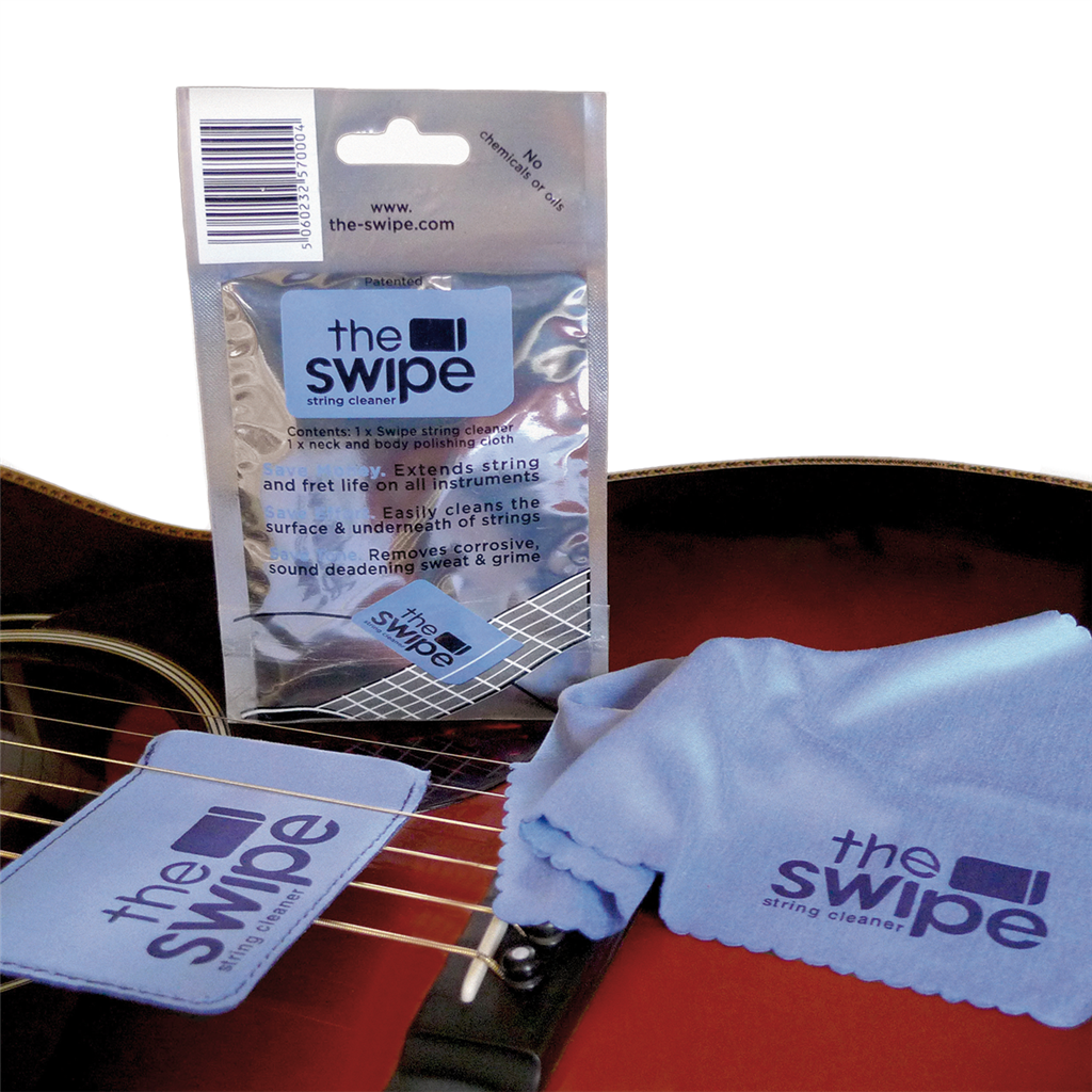 The Swipe has been developed for guitars to clean and remove dirt build-up from under strings.