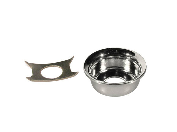TE-model input cup, with angled screwholes, M9 thread, metal, chrome