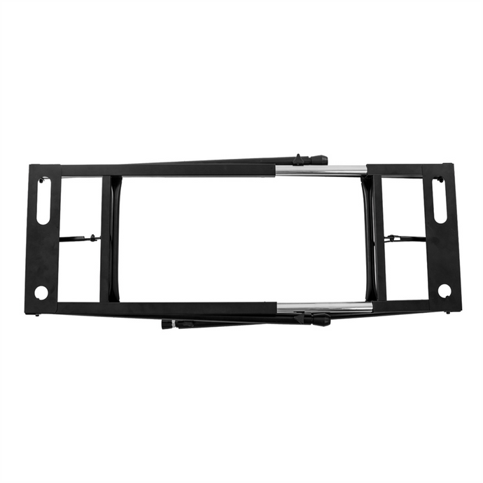 Keyboard stand, black, X-model, twist lock, bolt-on tiers, compact packaging