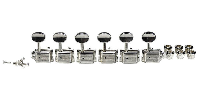 Machine heads for guitar, 3x left+3x right, vintage style, metal buttons, nickel