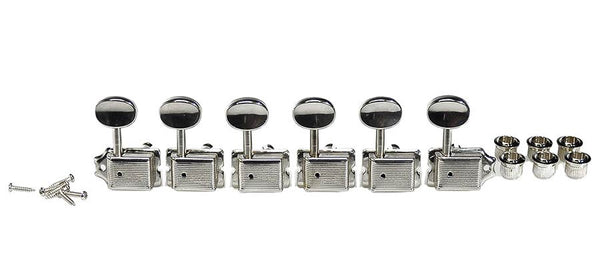 Machine heads for guitar, 3x left+3x right, vintage style, metal buttons, chrome