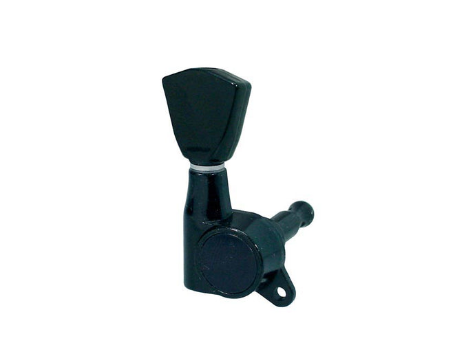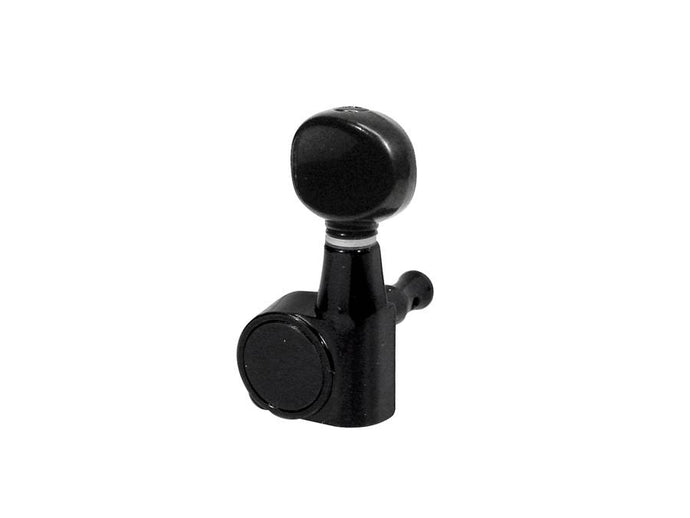 Machine heads for guitar, die cast, 3x left+3x right, deluxe buttons, black