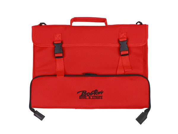 Music stand and desk music bag, with strap and accessory pocket, wine red