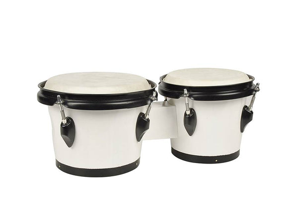 Bongo, hardwood, 7"+8,5", rawhide skins, black hardware, white