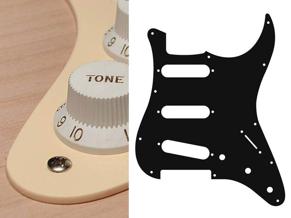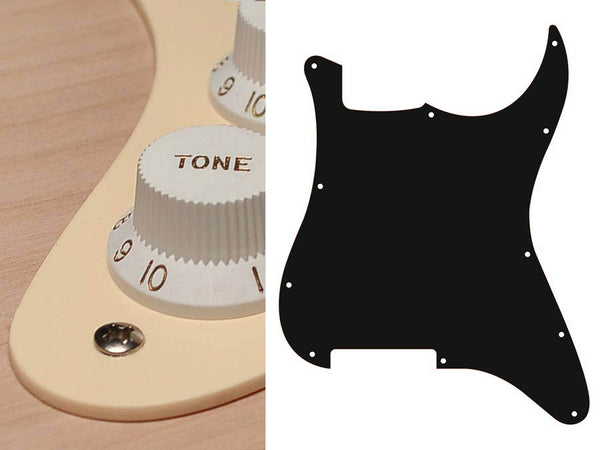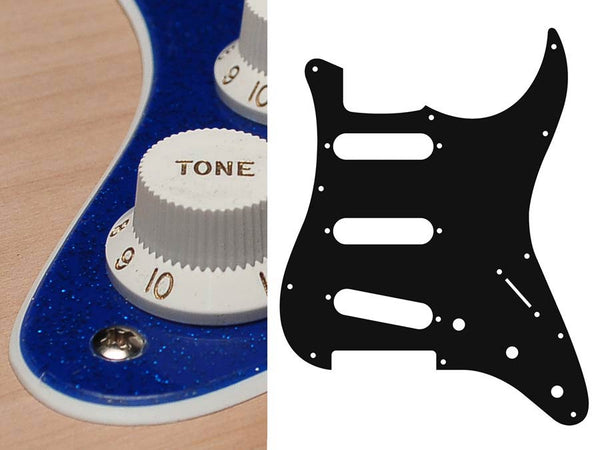 Pickguard, Stallion, standard, SSS, 3 pot holes, 3-5 switch, 1 ply, black