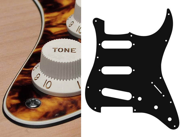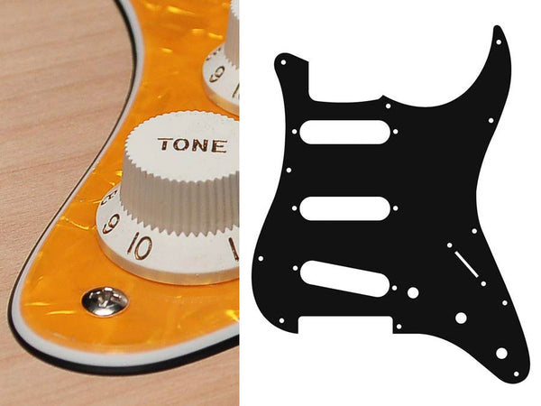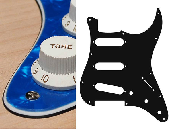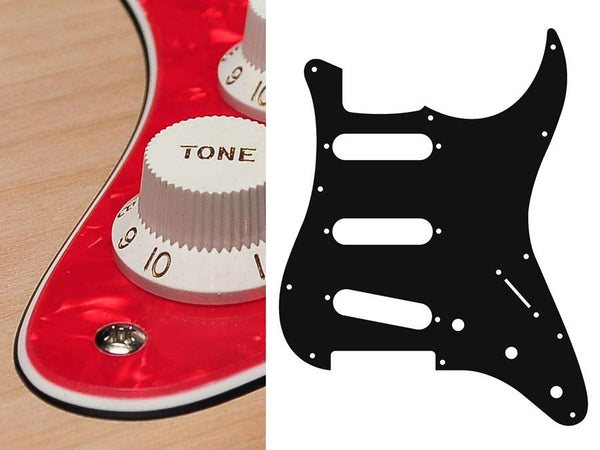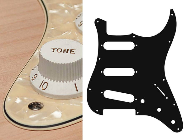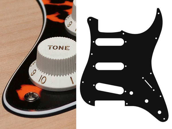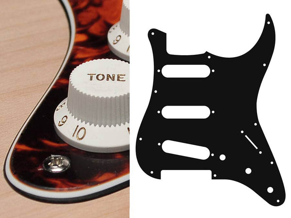 Pickguard, Stallion, standard, SSS, 3 pot holes, 3-5 switch, 3 ply, black