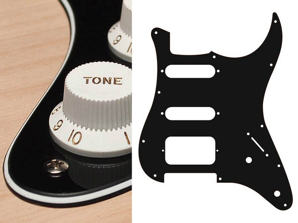 Pickguard, Stallion, SSH, 3 pot holes, 3-5 switch, 3 ply, black