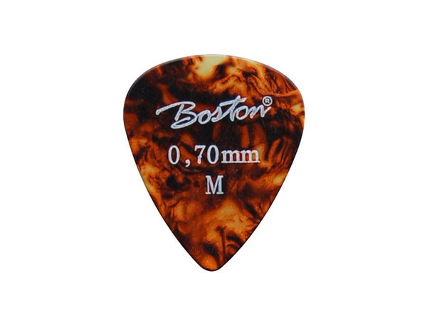Picks, celluloid, tortoise, standard teardrop model, 24-pack, medium, 0.70 mm.
