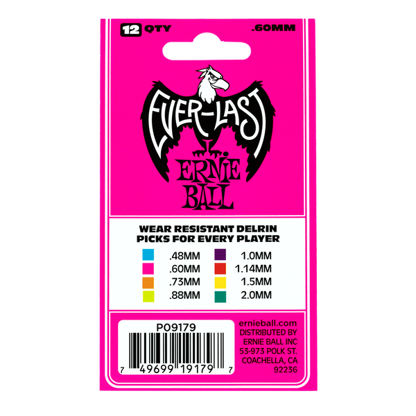 Ernie Ball Everlast Picks 12-Pack Pink .60mm