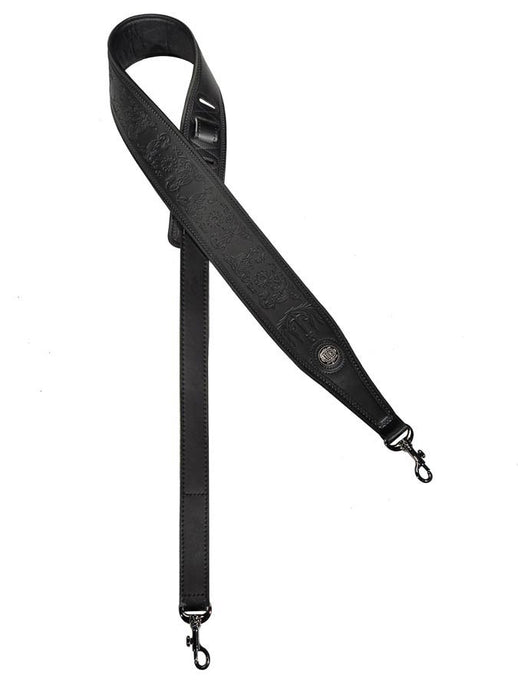Buffalo I Series Banjo strap, top quality leather, black, chrome clips and velcro quick-release strap