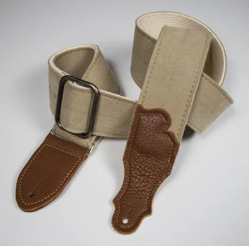 Franklin 2" Distressed Canvas Guitar Strap with Leather End Tab - Natural with Chocolate Tabs