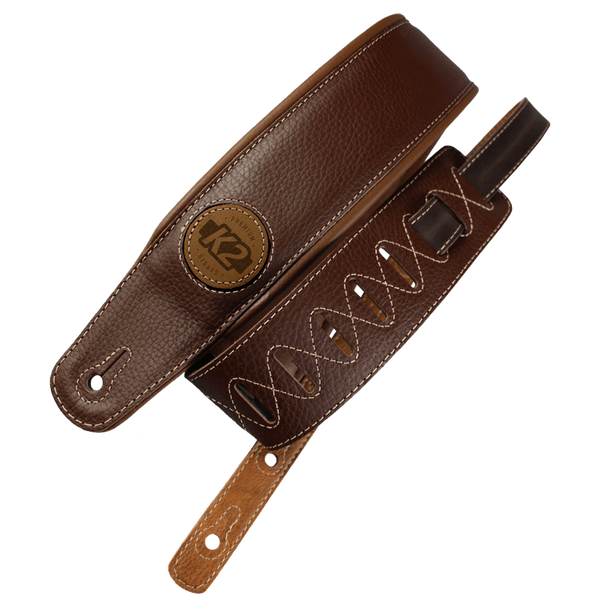 Padded Deluxe Series Guitar strap, black padded back, brown leather