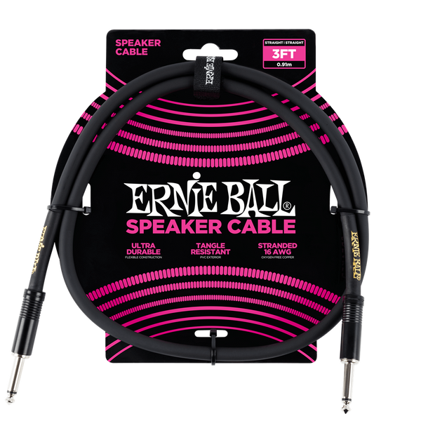 Ernie Ball 3Ft Straight-Straight Speaker Cable Black