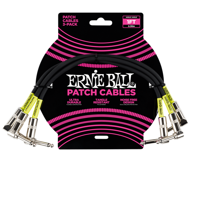 Ernie Ball 1Ft Patch Cable 3Pk Black