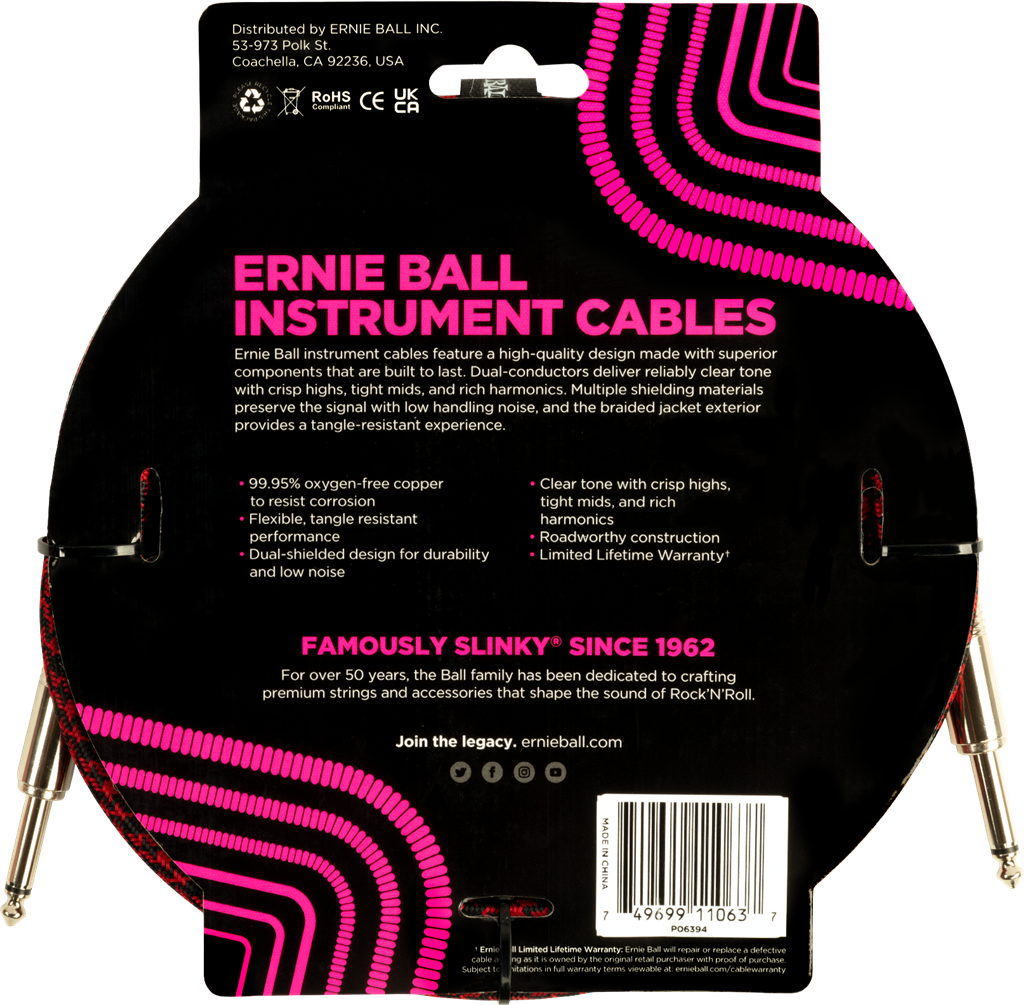 Ernie Ball 10Ft Braided Straight-Straight Red Black