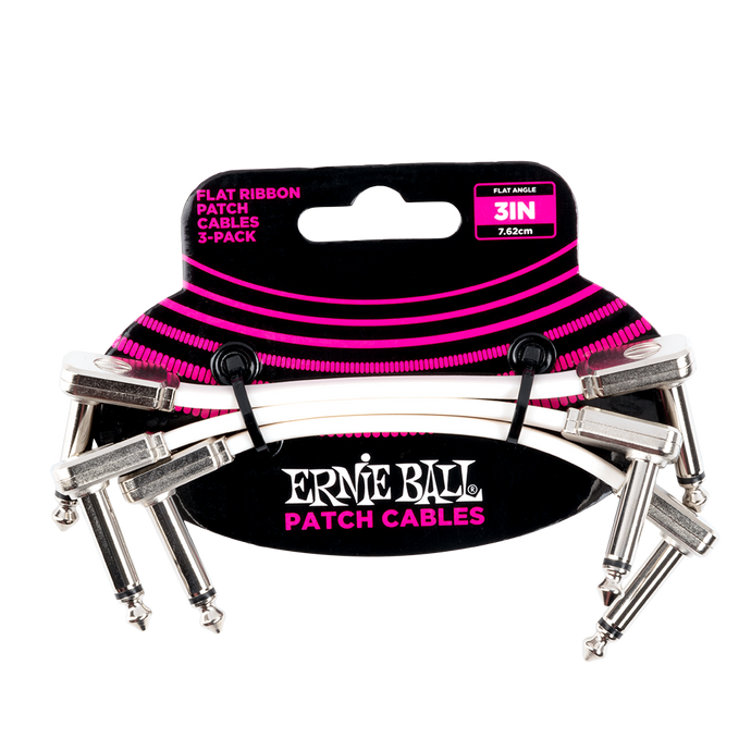 Ernie Ball 3" Flat Ribbon Patch Cable 3-Pack - White