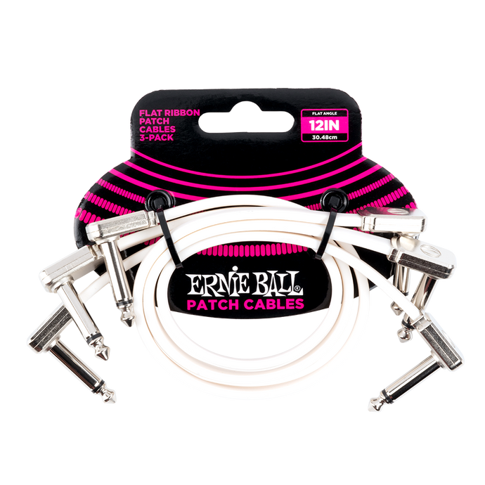 Ernie Ball 12" Flat Ribbon Patch Cable 3-Pack- White