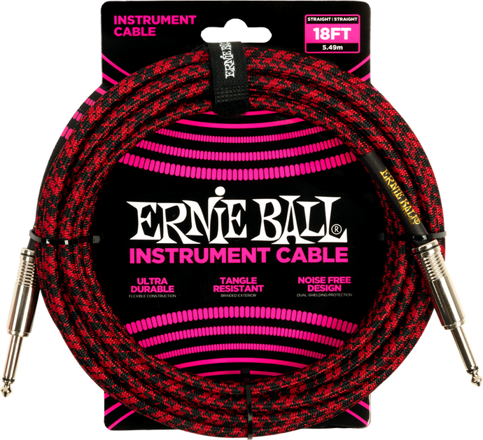 Ernie Ball 18Ft Braided Straight-Straight Red Black