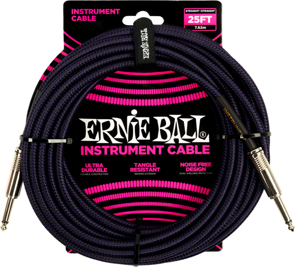 Ernie Ball 25Ft Braided Straight-Straight Purple Black