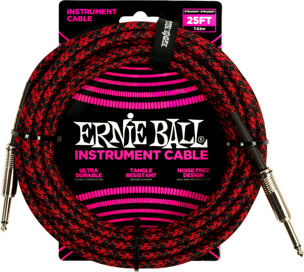 Ernie Ball 25Ft Braided Straight-Straight Red Black