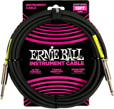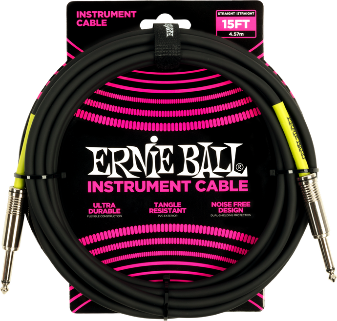 Ernie Ball 15Ft Pvc Straight-Straight Black