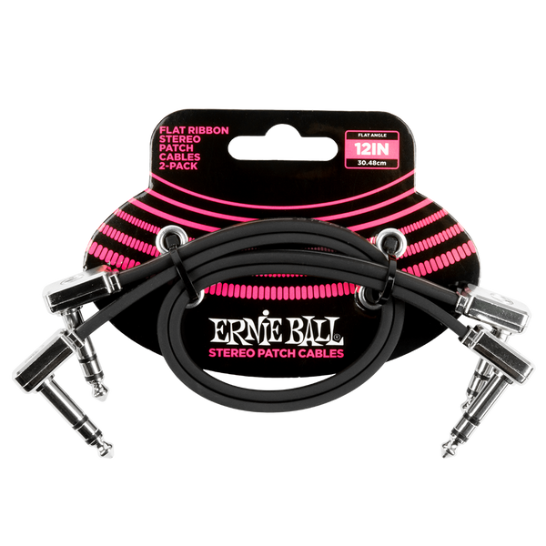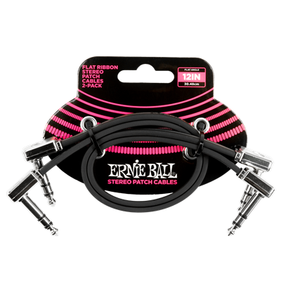 Ernie Ball 12" Flat Ribbon Stereo Patch Cable Black 2 Pack