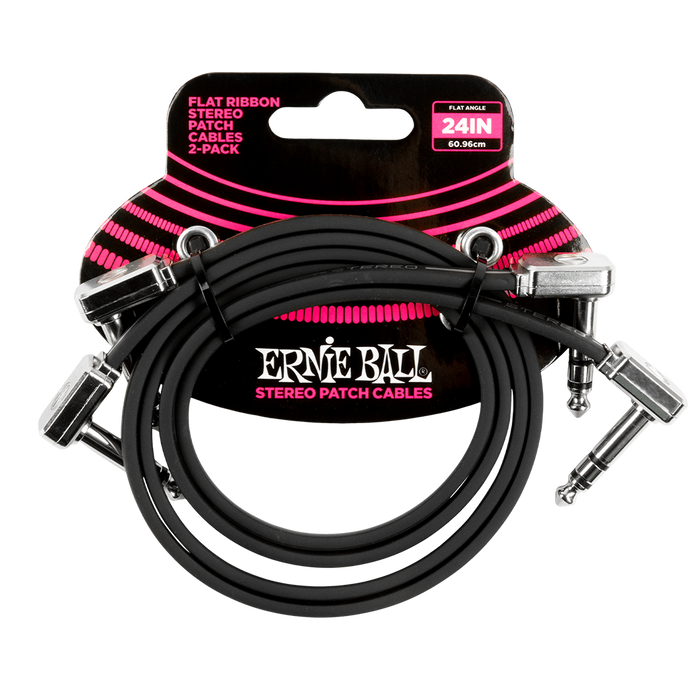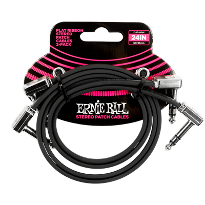 Ernie Ball 24" Flat Ribbon Stereo Patch Cable Black 2 Pack