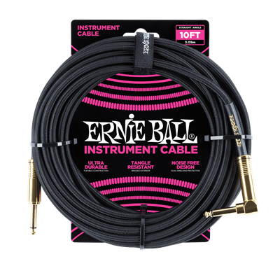 Ernie Ball 10' Braided Straight/Angle Cable - Black(Gold)