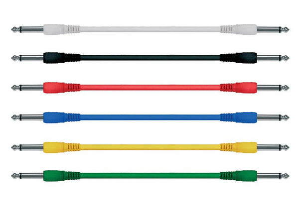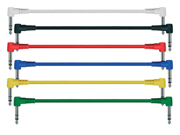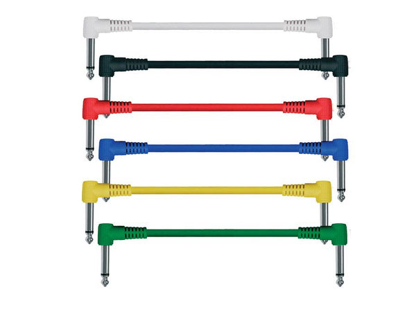 Patch cables, mono, 6-pack, 6 colors, moulded angled jacks, 0.15 meter