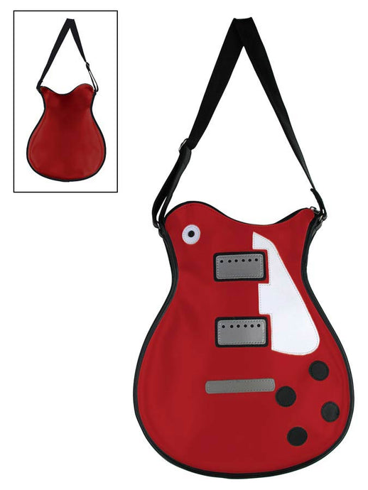 guitar shape shoulder bag, vinyl, LP-model, red and white