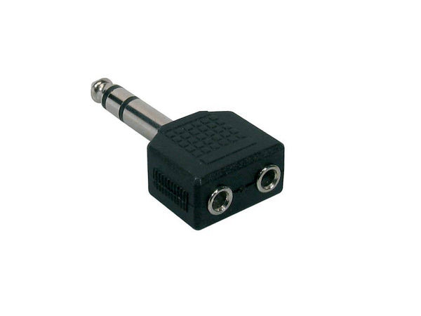 Adaptor, 2 x 3,5 jack female stereo, 6,3mm jack male stereo