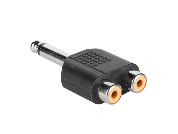 Adaptor, 2 x RCA female, 6,3mm jack mono