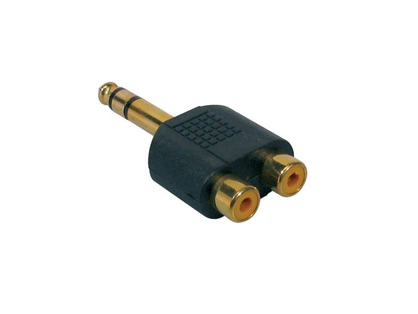 Adaptor, 2 x RCA female, 6,3mm jack male stereo