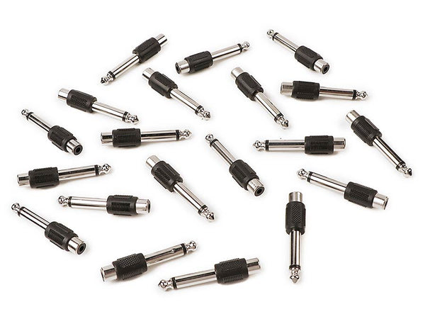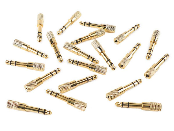 Adaptor, 3,5mm jack female stereo, 20 pcs bulk pack, 6,3mm jack male stereo, gold metal