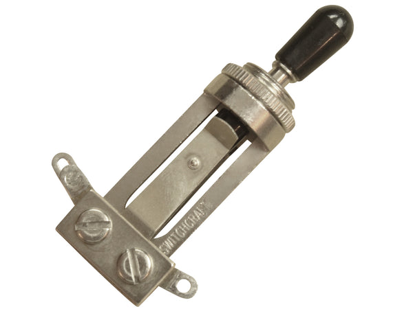 Toggle switch 3-way angled, no cap, for thin body guitars (SG, Explorer, Firebird), nickel